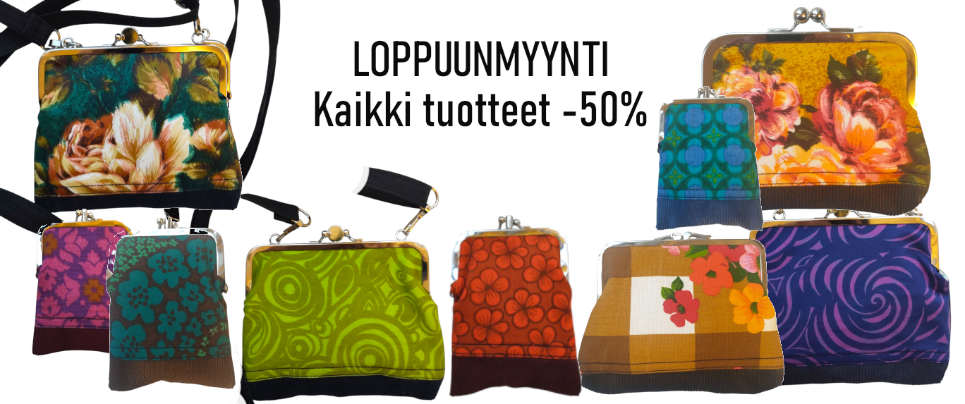 värikkään retrot ja käsinpainetut laukut ja kukkarot.