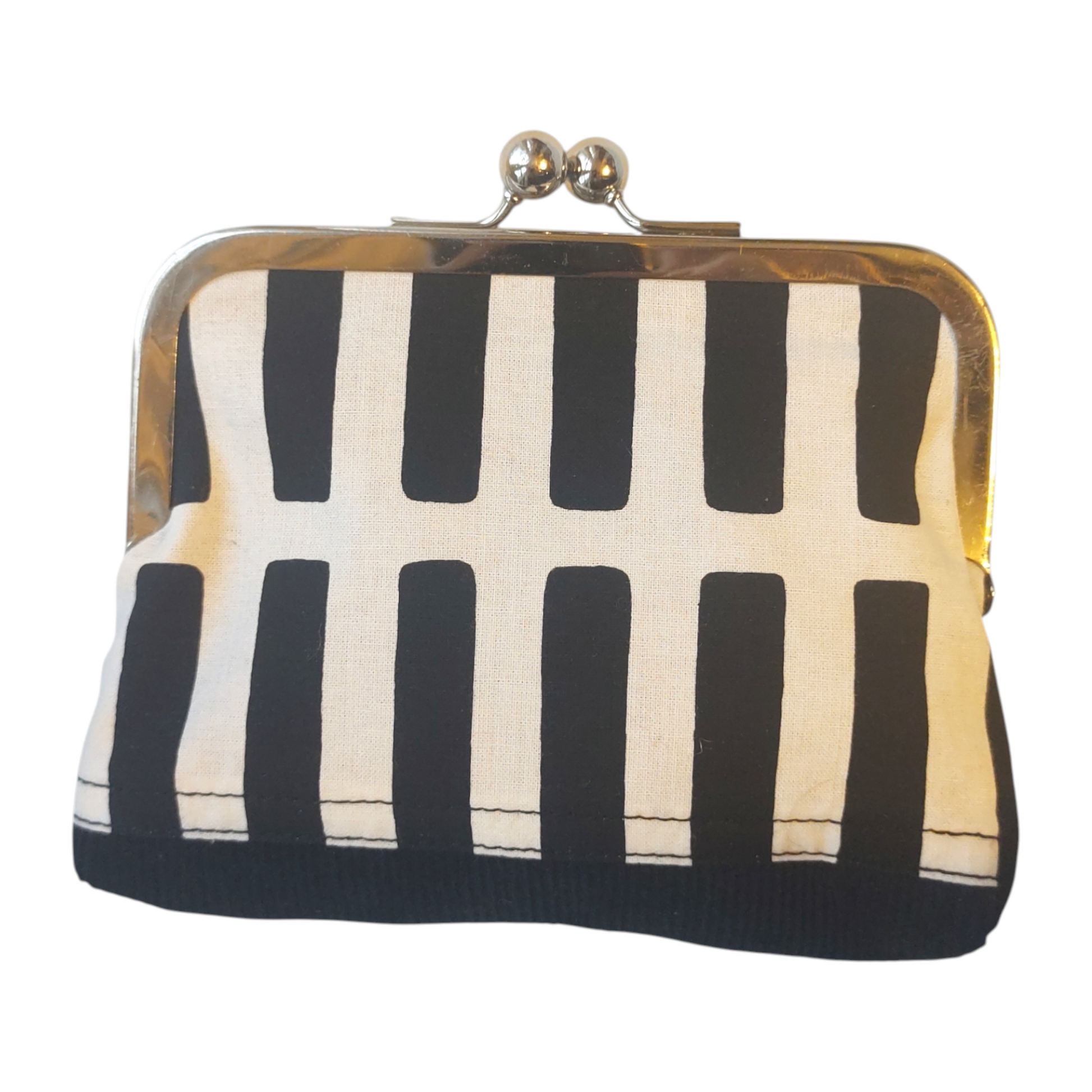 Leveä Retro-kukkaro on tilava ja käytännöllinen lompakko jokapäiväiseen käyttöön. Käytännöllisellä nipsumekanismilla suljettavat kukkarot ovat valmistettu uusiokäytetyistä värikkäistä retrokuoseista tai kierrätyskankaista sekä nostalgisista vakosameteista tai paksuista puuvillakankaista.