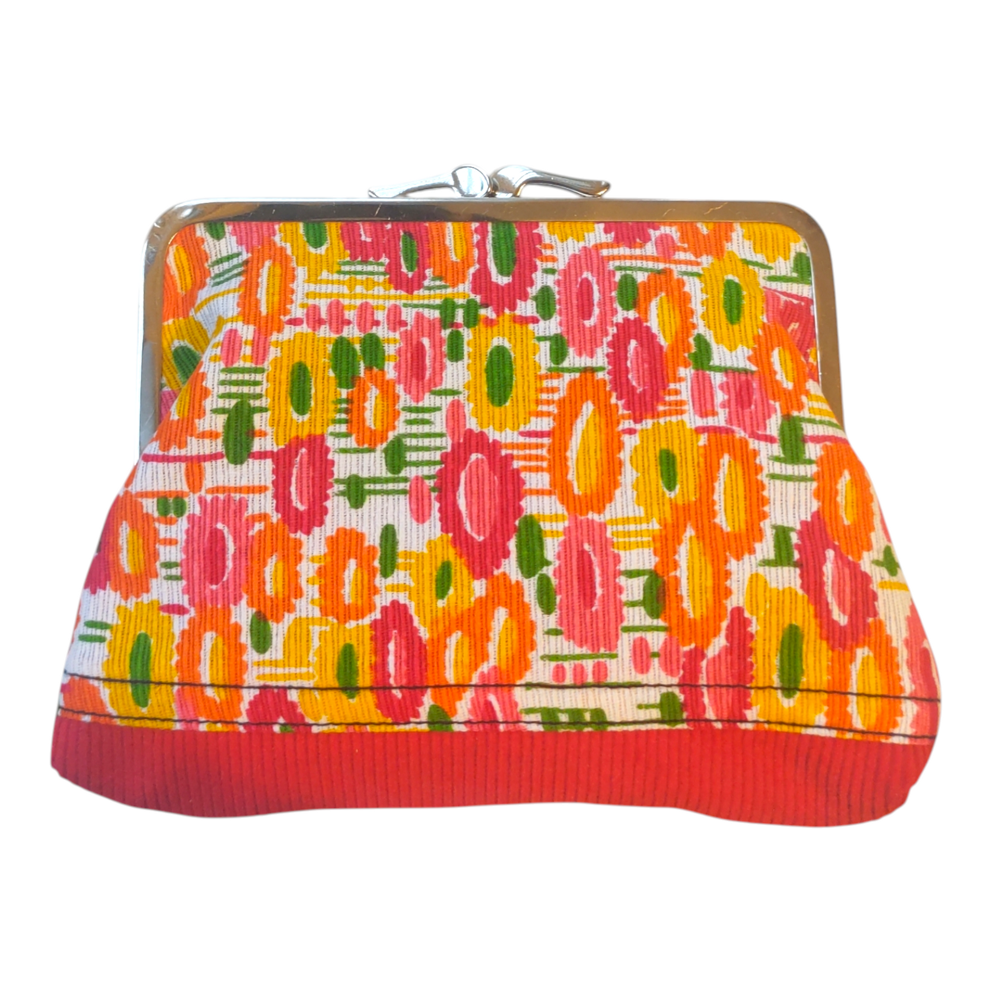 Leveä Retro-kukkaro on tilava ja käytännöllinen lompakko jokapäiväiseen käyttöön. Käytännöllisellä nipsumekanismilla suljettavat kukkarot ovat valmistettu uusiokäytetyistä värikkäistä retrokuoseista tai kierrätyskankaista sekä nostalgisista vakosameteista tai paksuista puuvillakankaista.